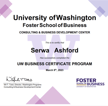 I’m a third-generation entrepreneur in my family. SERWA (Sir-wah) is my name, it means NOBLE WOMAN origin in Swahili, with a strong interest in science and pathology. I gravitated towards an Industrial Hygienist career. I am committed to community health service roles. In 2020 Cleaning Executive Operations, LLC was created with over 25 years of experience working through infectious disease control through global pandemics and crises such as HIV and AIDS prevention and education, Hepatitis C Testing and Counseling, and most recently COVID-19 testing grades K- 12 Lake, Washington School District.