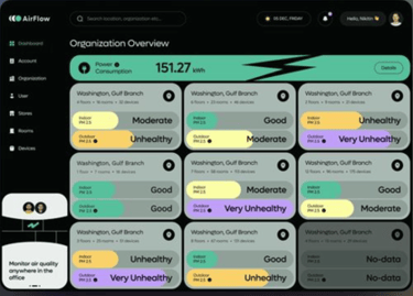 Real-time monitoring of air quality, detecting pollutants such as mold, CO2, and more.